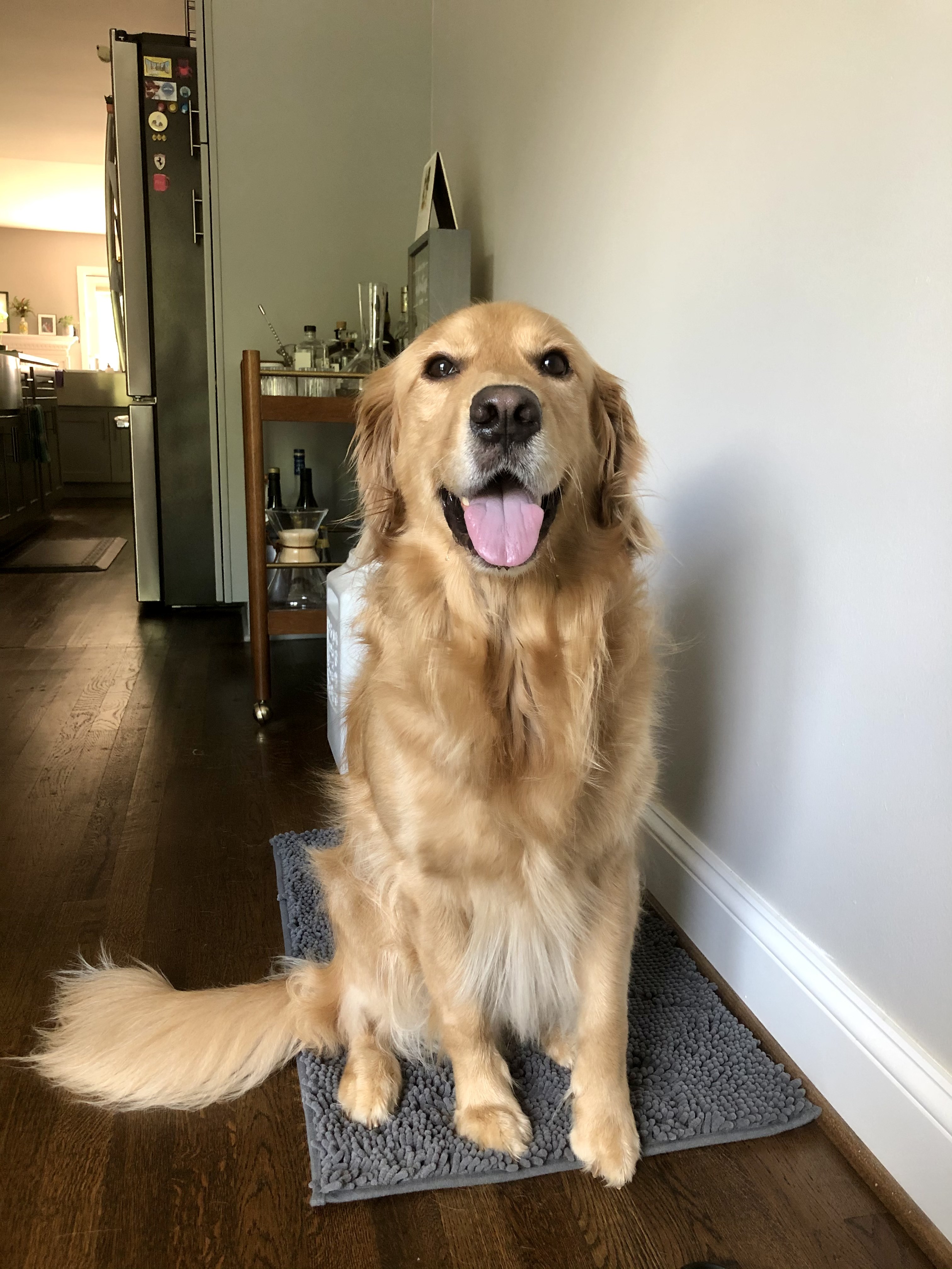 I originally bought this to make bath time clean up much easier, but my dog loves this way too much to keep it only for the bath! I bought 2 more, 1 for wiping him dry paws after a day out in the rain, or if there’s too much slobber from drooling on the ball (haha). He loves it so much, all I need to do is say “Time to dry your feet!” and he fetches his favorite towel for me. I saw that Muddy Mat also sells these rugs made of the same material, so I had to buy one for each of the doggy doors!